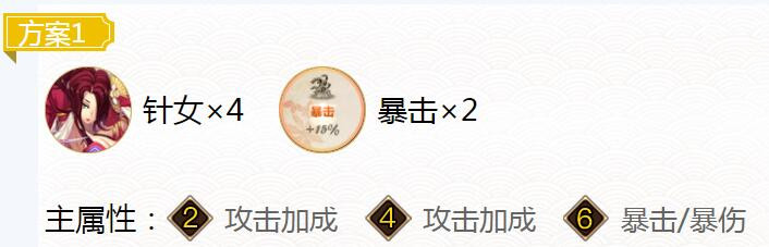 二、御魂推荐方案2:日女巳时x4+攻击加成套x2